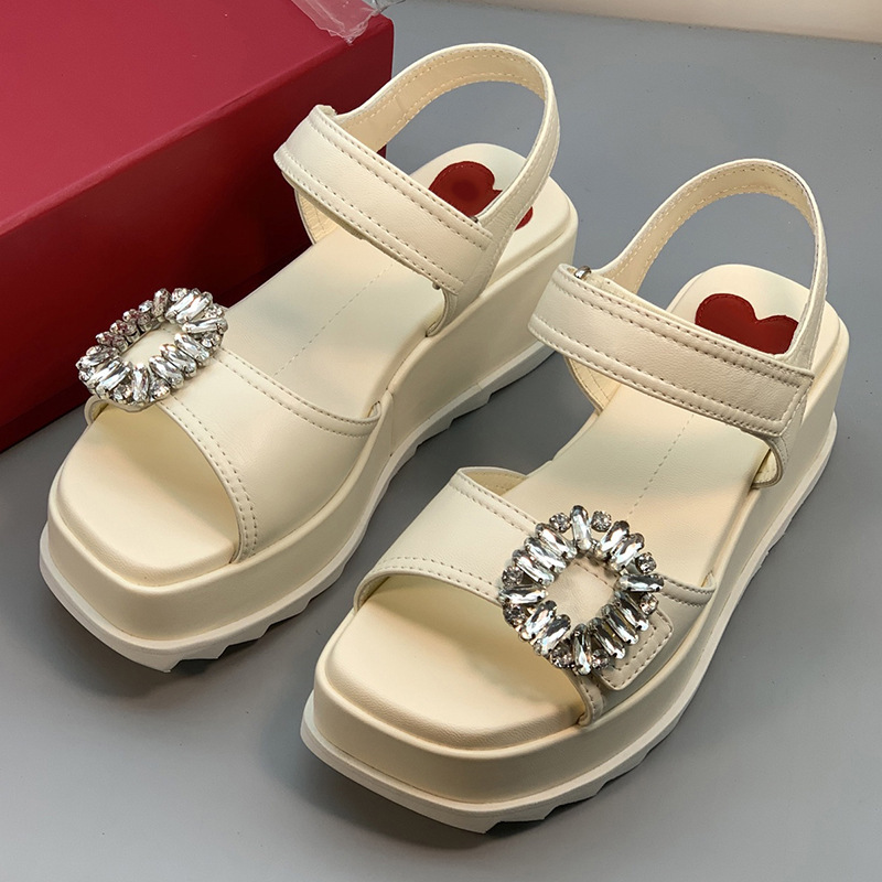 ラインストーンスクエアバックル夏 2025 新しいファッションハイバージョンオープントゥサンダル気質ベルクロ高さ増加厚底サンダル