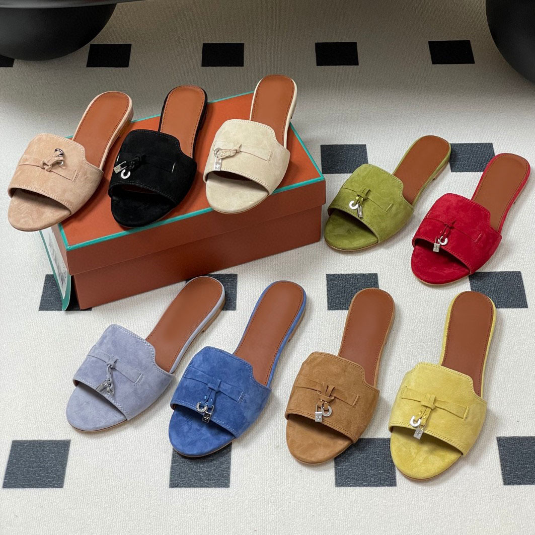 ハイバージョン 2025 新しいスエードタッセルロック本革フラットスリッパ女性の夏のアウターファッションスリッパ