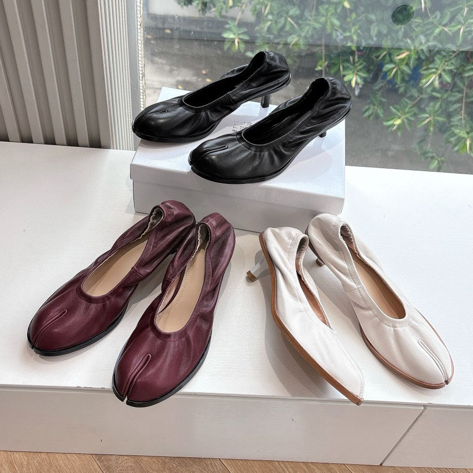 ハイバージョン 2025 夏の新ファッショナブルな本革スプリットトゥシューズ女性のためのスティレットヒールストラップメリージェーンバレエシューズ女性のための