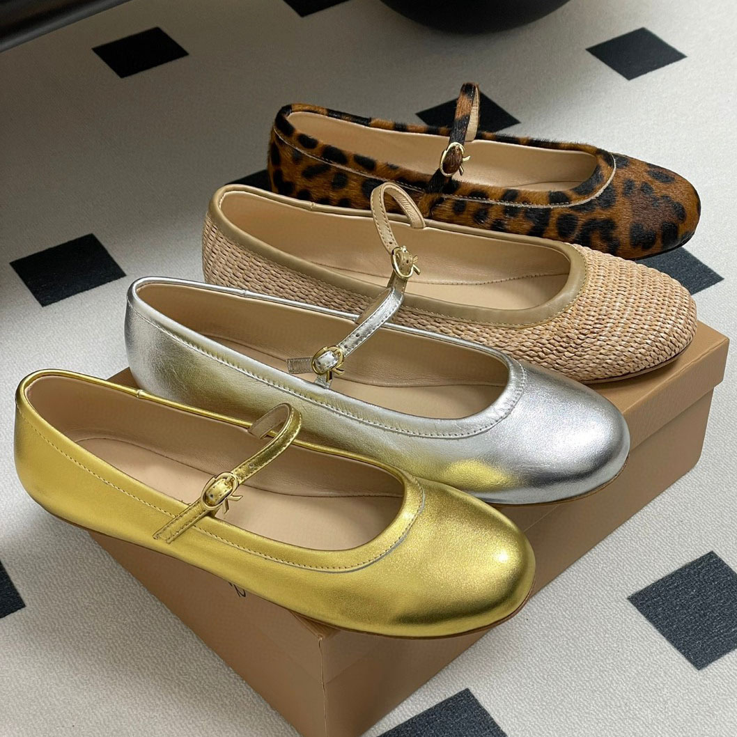 本革バックルフラットシューズレディースフレンチメリージェーンシューズシルバー2025新作バレエシューズワンラインラウンドトゥ春