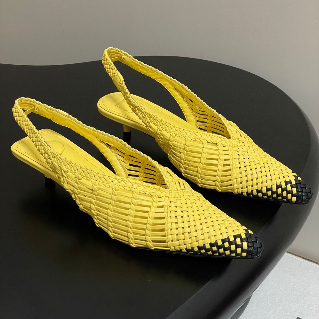 女性用編み込みつま先サンダル、2025年夏新作レトロシープスキンカラーブロックスティレットヒールサンダル、キャットヒールシューズ