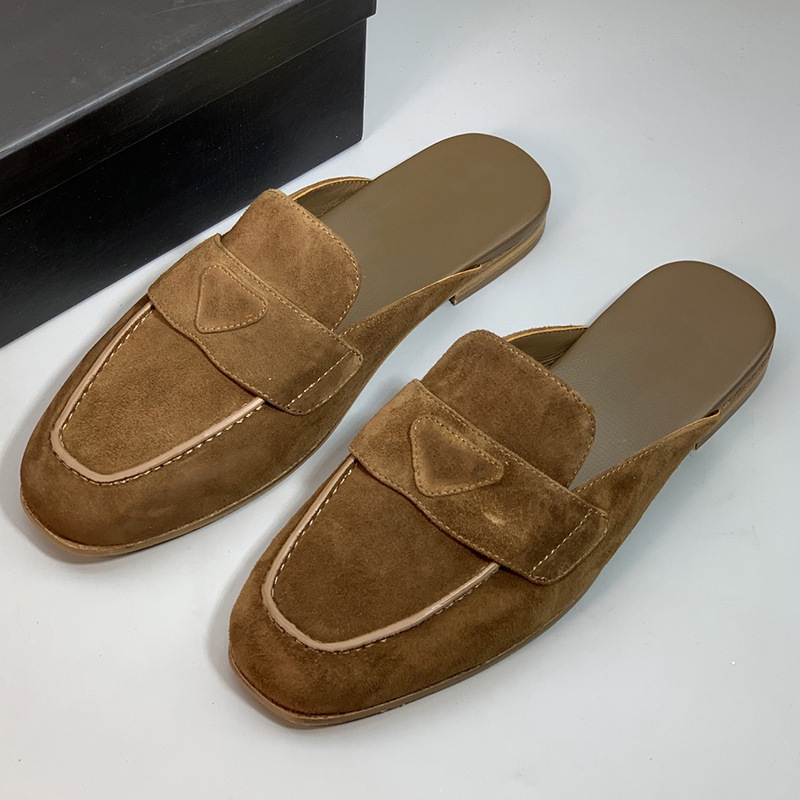 包頭ハーフスリッポンレディース牛コイン怠惰なトレンディなファッション平底新作春夏ミュールシューズクラシック2025アウターウェア