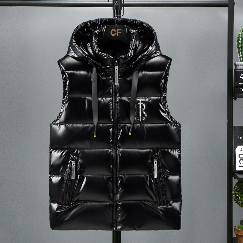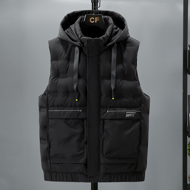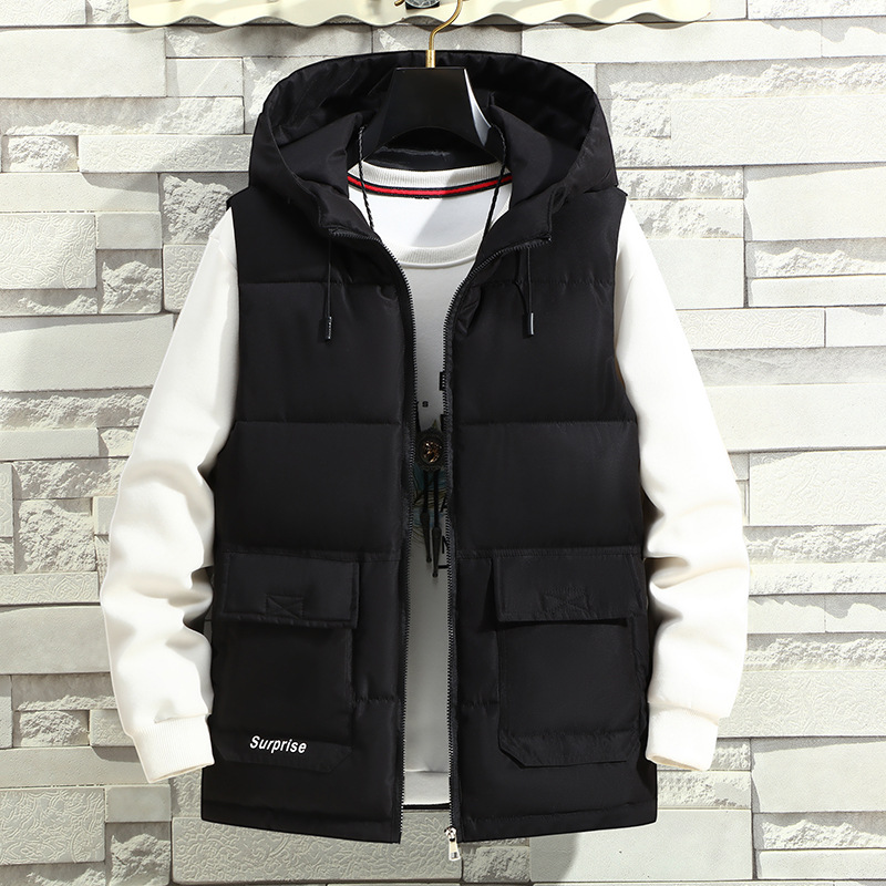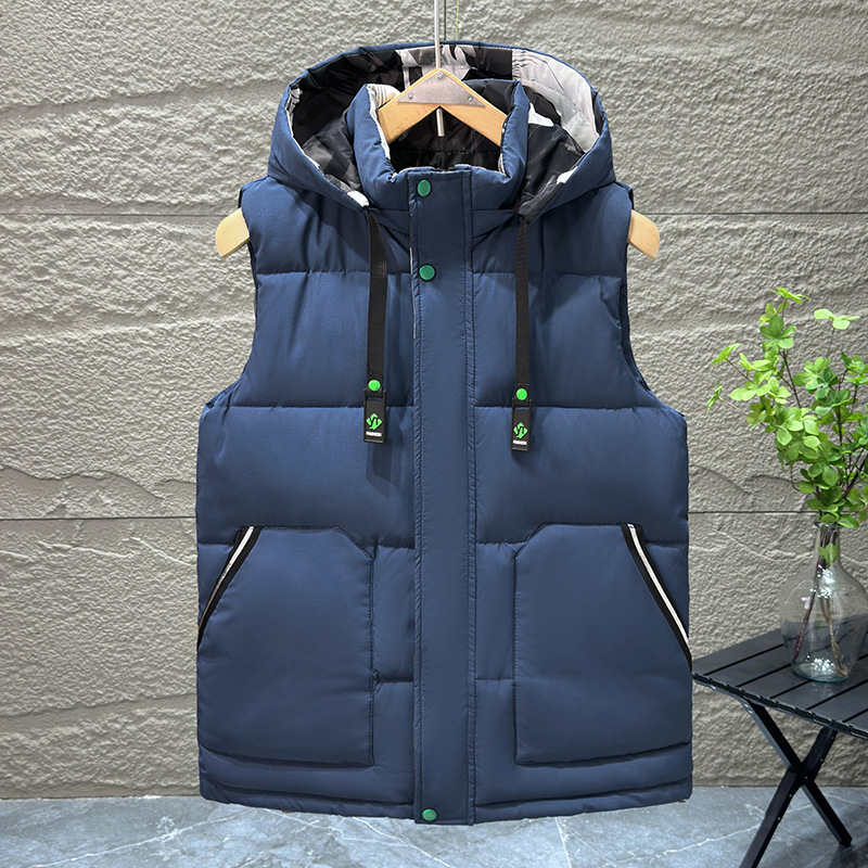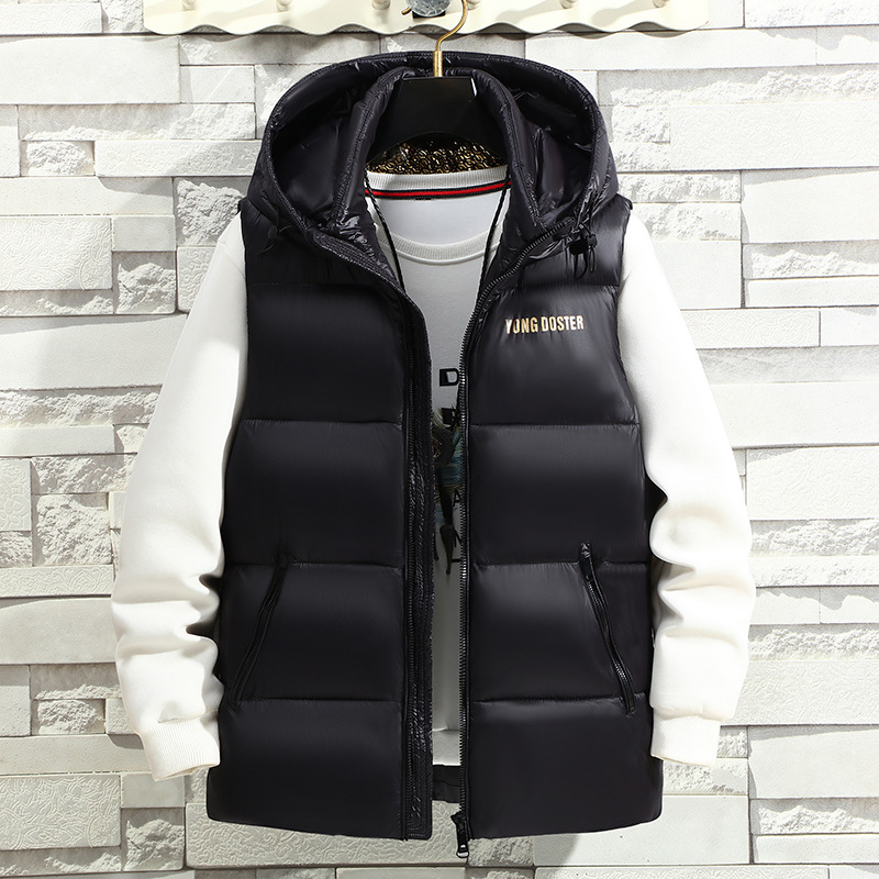 秋冬馬甲男性ベストカジュアルフード付きダウンジャケット保温男性コートのゆったり版プラスサイズの肩