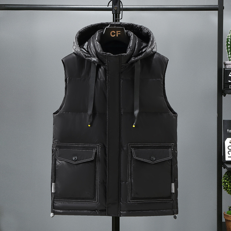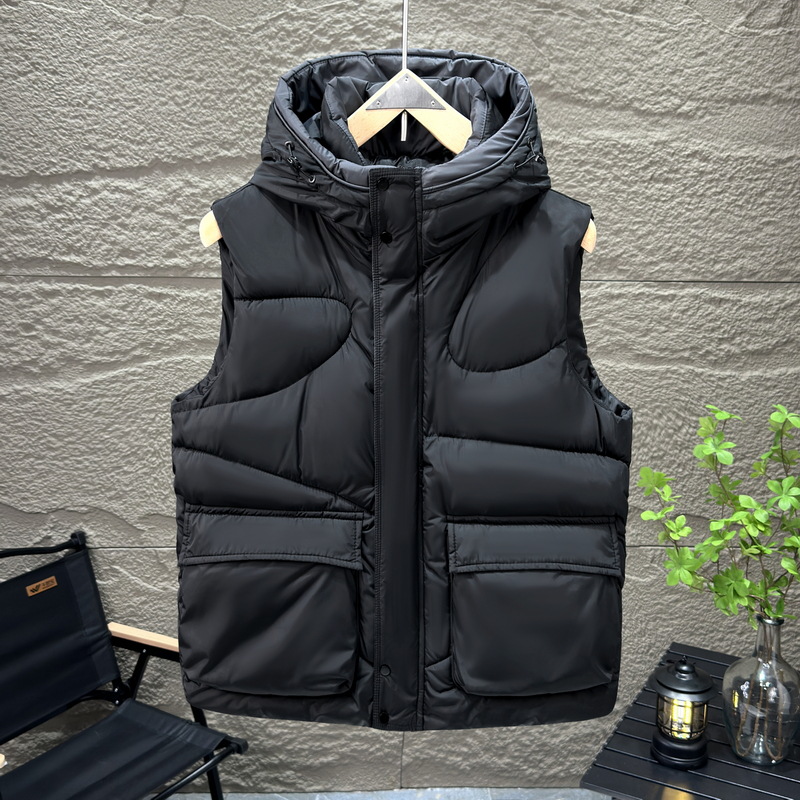 2024冬の新型ダウンベストの男性は、帽子を厚くして保温コートを脱ぐことができます。