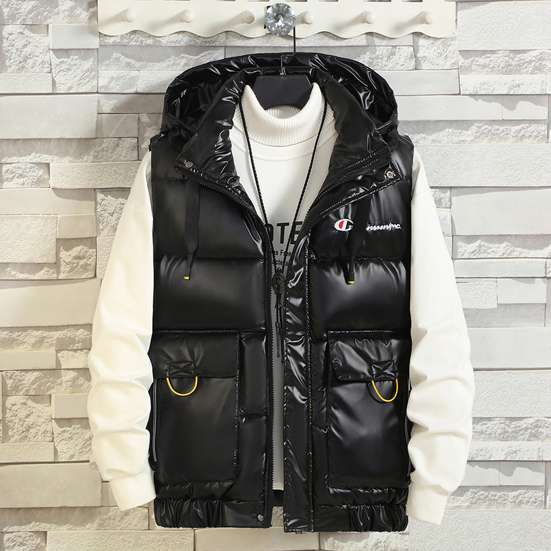 男性馬甲秋冬の明るいコートダウン綿カン肩保温ベスト韓国版ファッション外着カップル馬甲