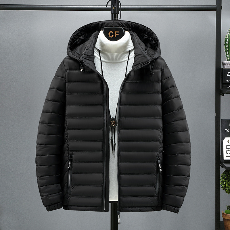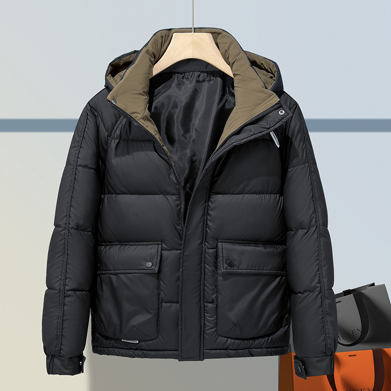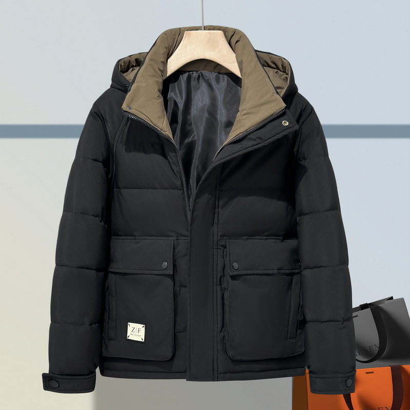 2024新型の帽子付きダウンジャケットは、冬に綿入れのファッションを厚くする男性の保温性が高い綿のコートを厚くする