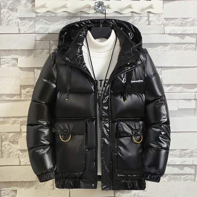 男性用綿服冬の新型綿入れのファッションブランドの短い純色の保温性と厚い綿入れの帽子とカジュアルなコート