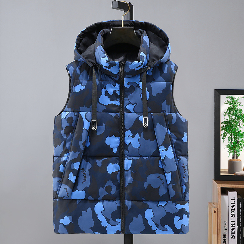 国境を越えた新しい冬のジッパーカジュアルスポット帽子付き迷彩青年ファッション綿馬甲迷彩綿馬ジャケット潮