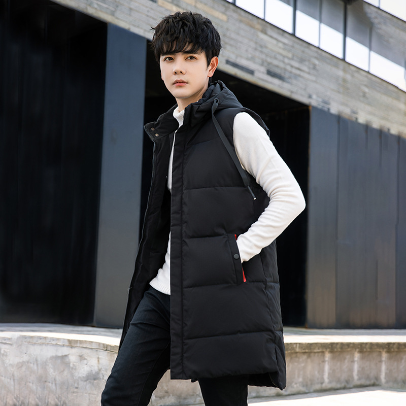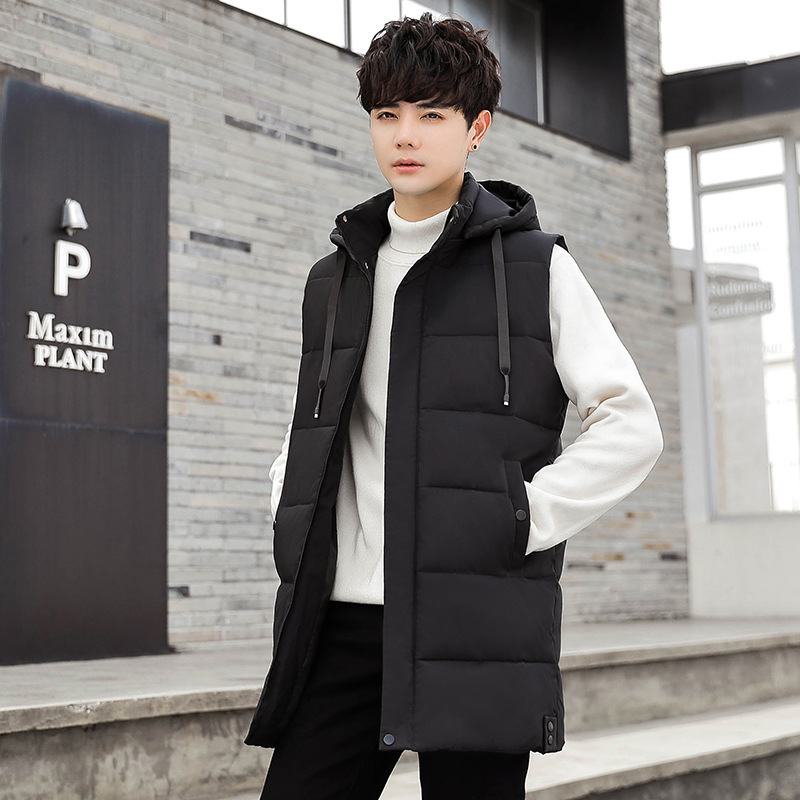 馬甲男秋冬コート韓国版ファッション学生保温ベストノースリーブカン肩ミディアムダウンコットン馬クリップ