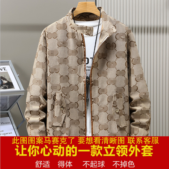 ヨーロッパの秋の新商品のファッションブランドの男性のアルファベットのジャカードの青年のジャケットのキャンバスの百合のスタンドカラーのコートの韓国版の上着