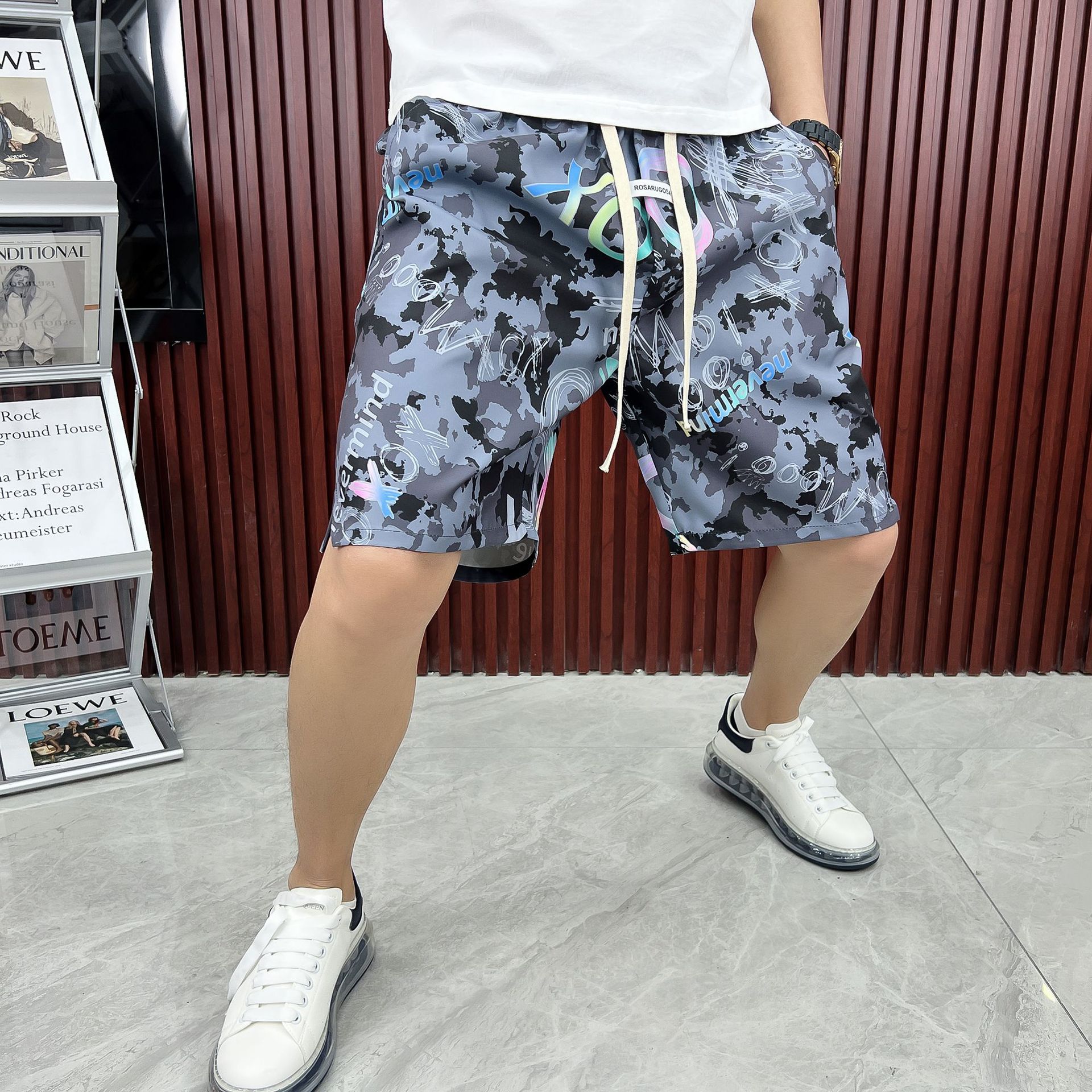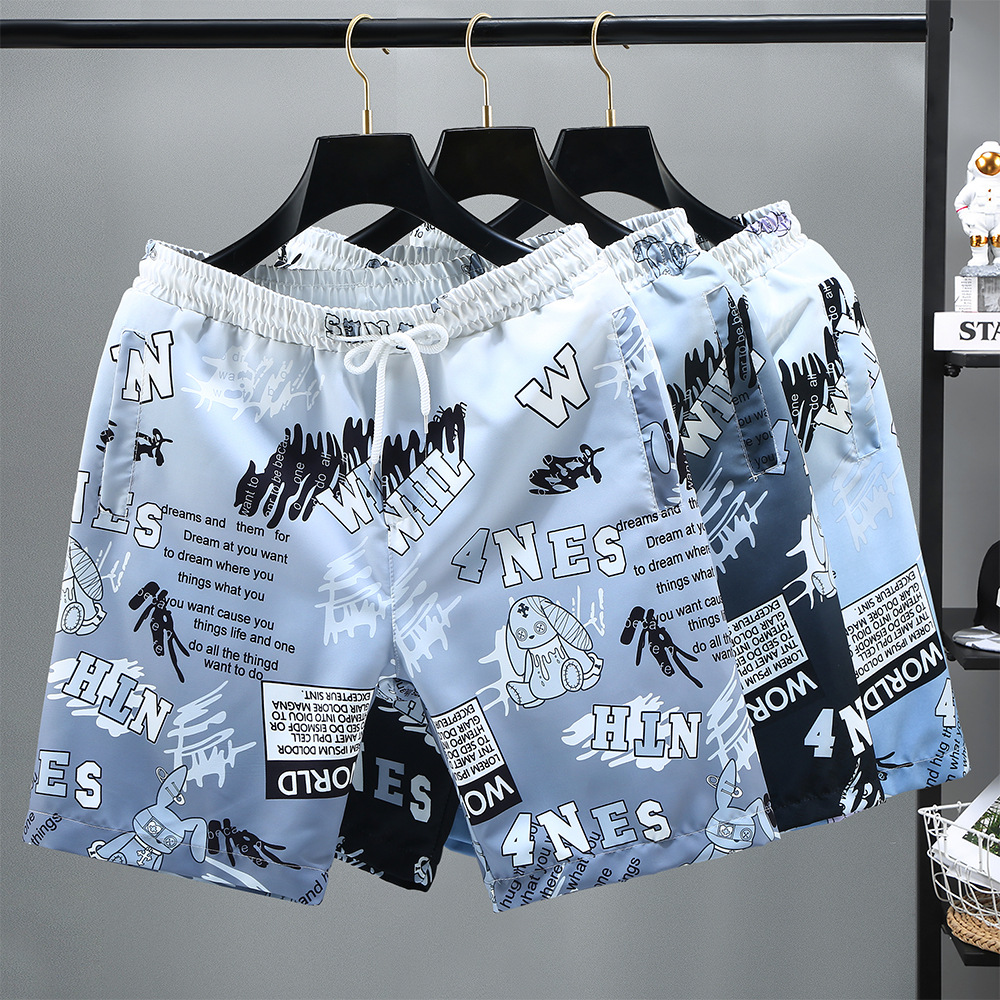 ヨーロッパ駅カップル速乾半ズボン男性夏プリントビーチパンツの薄いズボンの外にカジュアルな五分ズボン男性を着ています。
