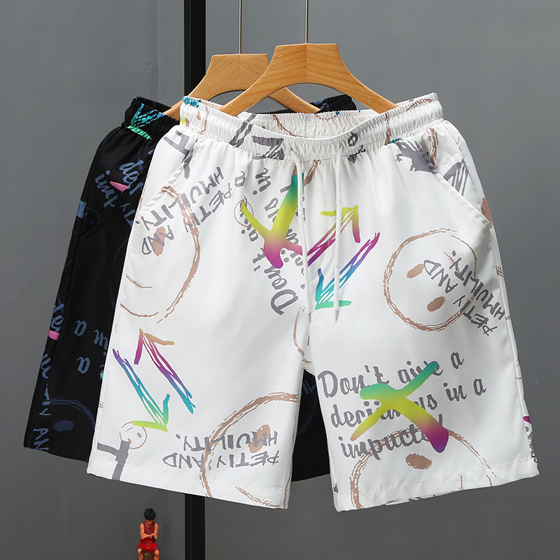 夏の新型男性半ズボンの薄い速乾プリントのアルファベットの5分のズボンの屋外の潮流の運動の大きいサイズのビーチのズボン