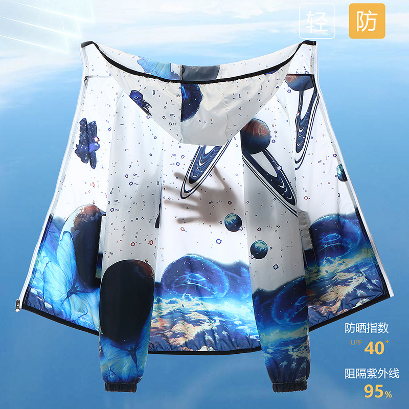 国境を越えた夏の新型2024トレンドの薄い通気性日焼け止め服男性グラデーション星空大サイズ皮膚服コート