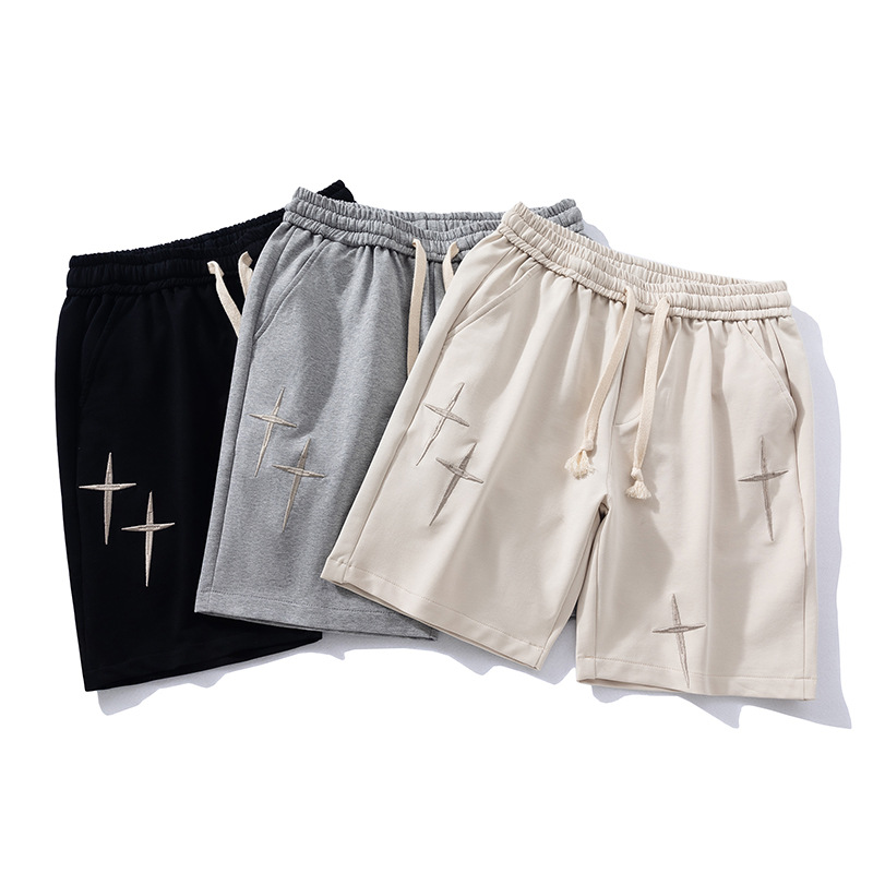 アメリカのレトロな星の刺繍の潮のブランドのニットの半ズボンの男女の百合の街頭のゆったりしているまっすぐな筒の5分の砂浜のズボン