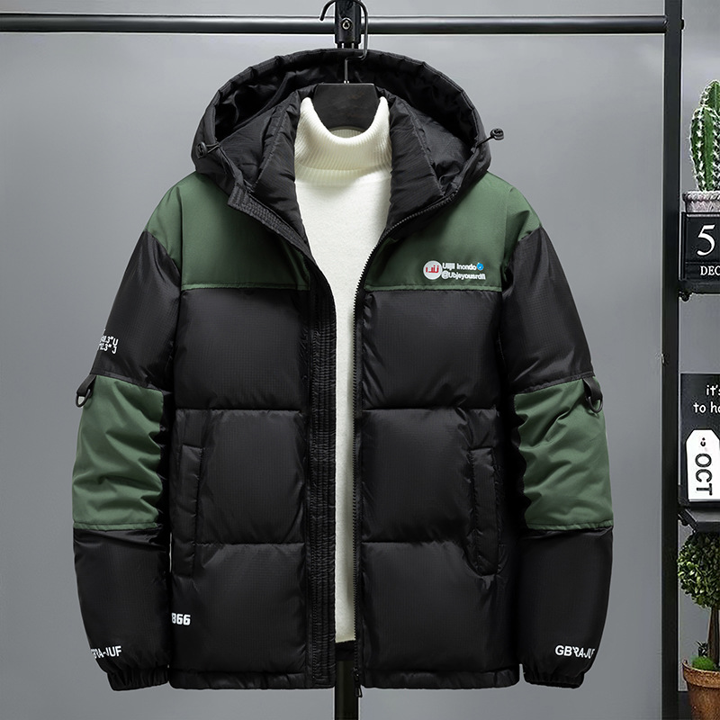 ベストメンズ2023秋冬のファッションはゆったりとした厚手のダウンジャケットを着ています。