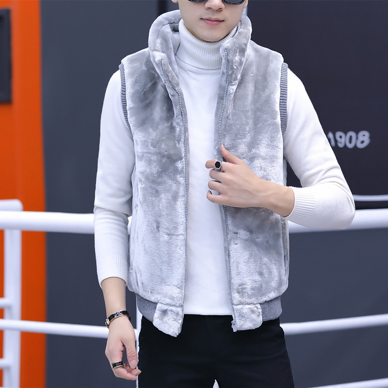 男性のぬいぐるみのベストはミンクの肩のベストの秋冬の保温の格好がいいです。