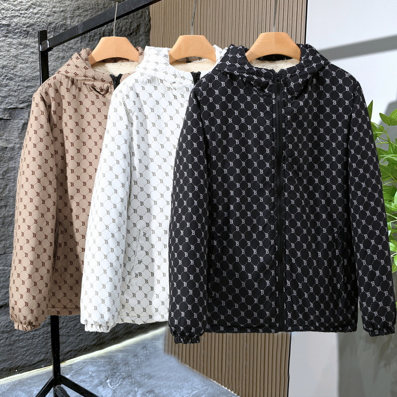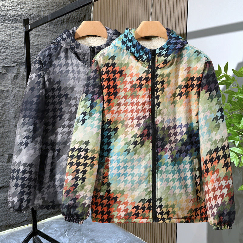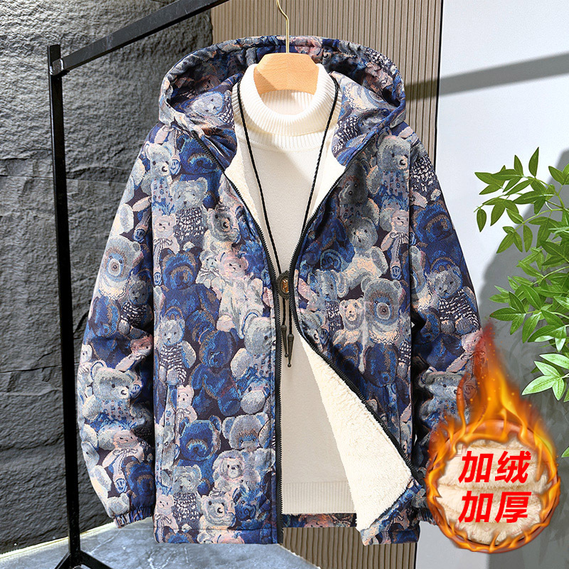 男性フード付きプリントと綿とベルベットのジャケット2023年秋冬の新型男性服青年カジュアルコート