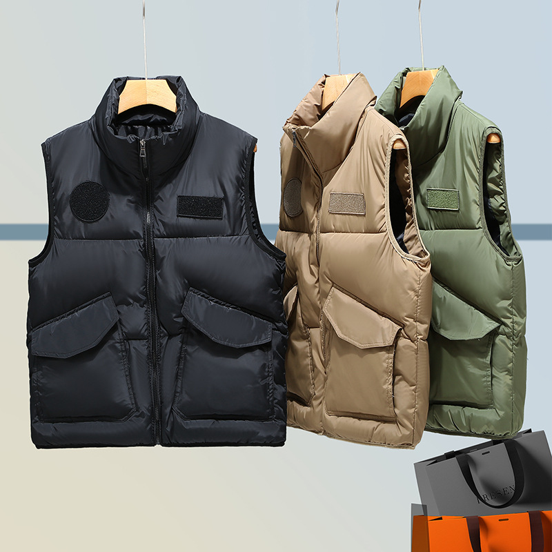 秋冬ファッション立襟ダウン綿馬甲2023新ファッションはゆったりとした保温男性ベストの肩を厚くする