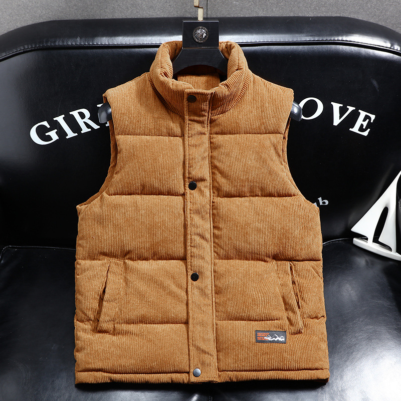 馬甲男秋冬青少年立襟潮流コーデュロイ馬挟み厚い保温男性格好いいベストコート
