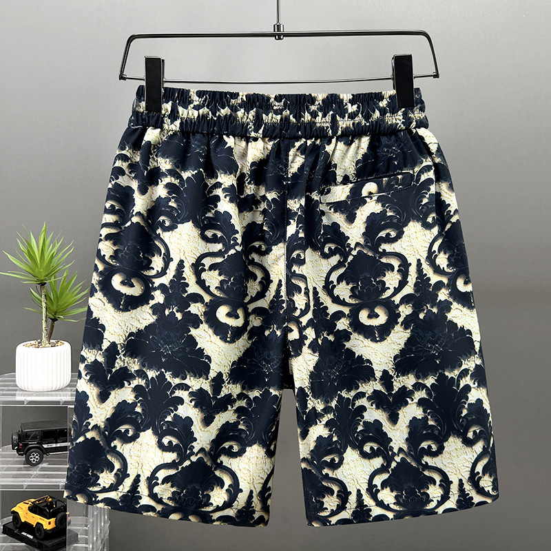 クロスボーダー夏プリントショーツメンズアウターアイスシルクショーツカジュアル速乾パンツトレンディなビーチパンツ大きいサイズの5点パンツ