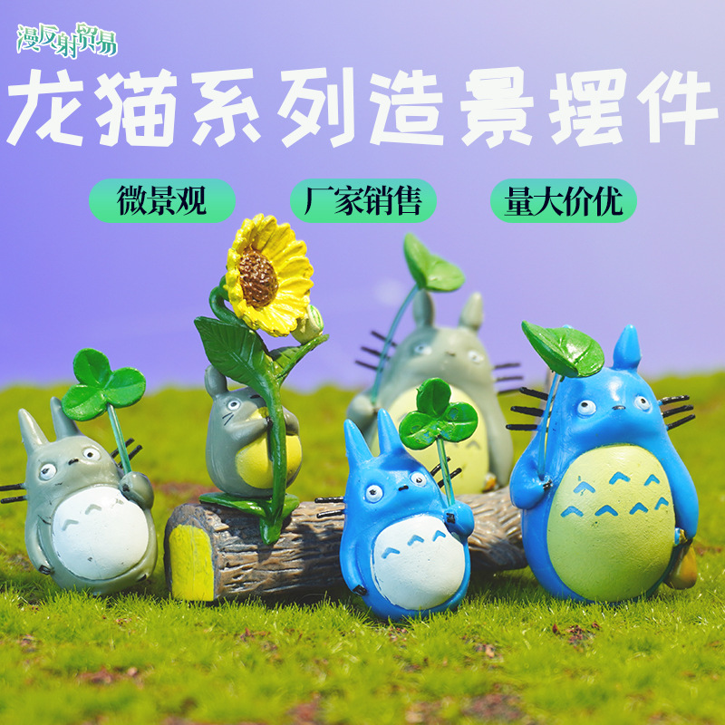 宮崎駿のクローバーは葉の大きさの竜猫のネットの赤い金魚鉢の小さい置物の車内の装飾品の公仔を挙げて卸売りします。