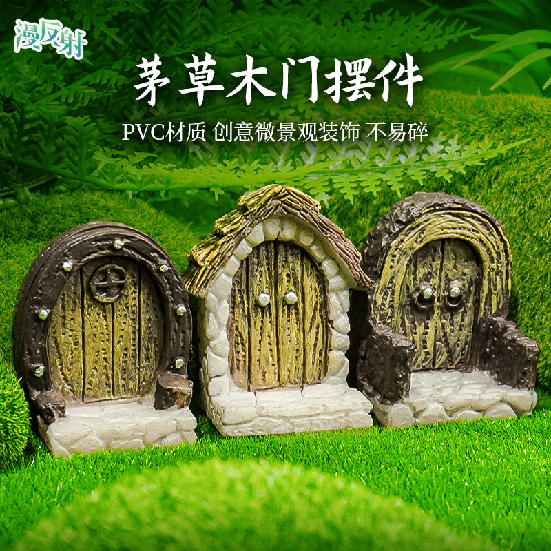 金魚鉢の造景の置物のシミュレーションの独特な小さい木の扉の額縁の部品の樹脂のホビット人の扉の扉の店主は推薦します。