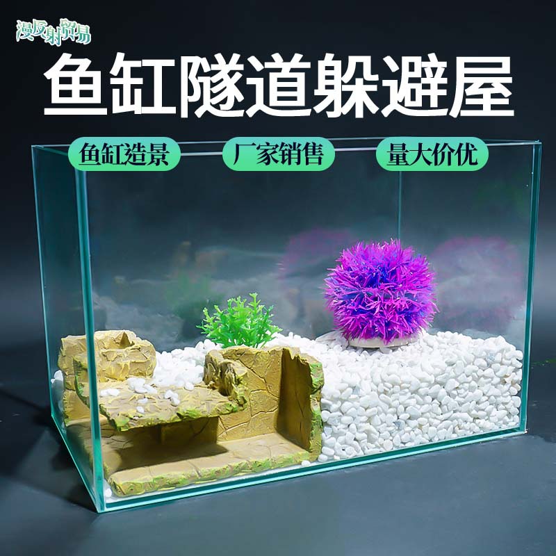一体型専用エビ隠れ家、特殊魚装飾造景ハウス、水槽直角隠れ家、水槽隠れ家、地下コーナートンネル