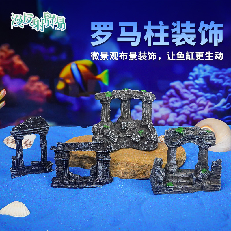 蘇州卸売創意考古学置物金魚鉢造景単双柱ローマ柱樹脂コケ微景観装飾