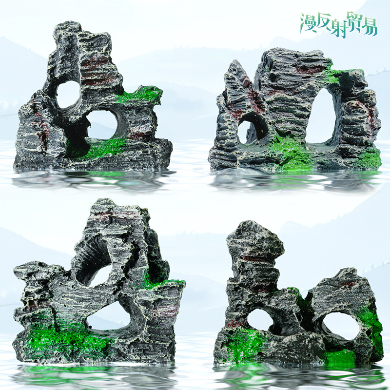 水族館の装飾品、家庭用クリエイティブ樹脂製模擬岩、水槽用ソリッドストーン造園装飾、卸売模擬デザイン