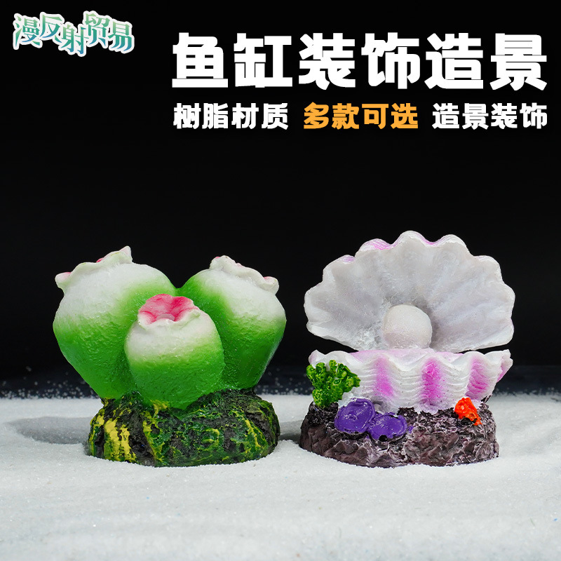 水槽造園装飾品樹脂サンゴ水族館装飾工芸品ホタテ貝シミュレーション酸素ポンプ偽貝殻を装備可能