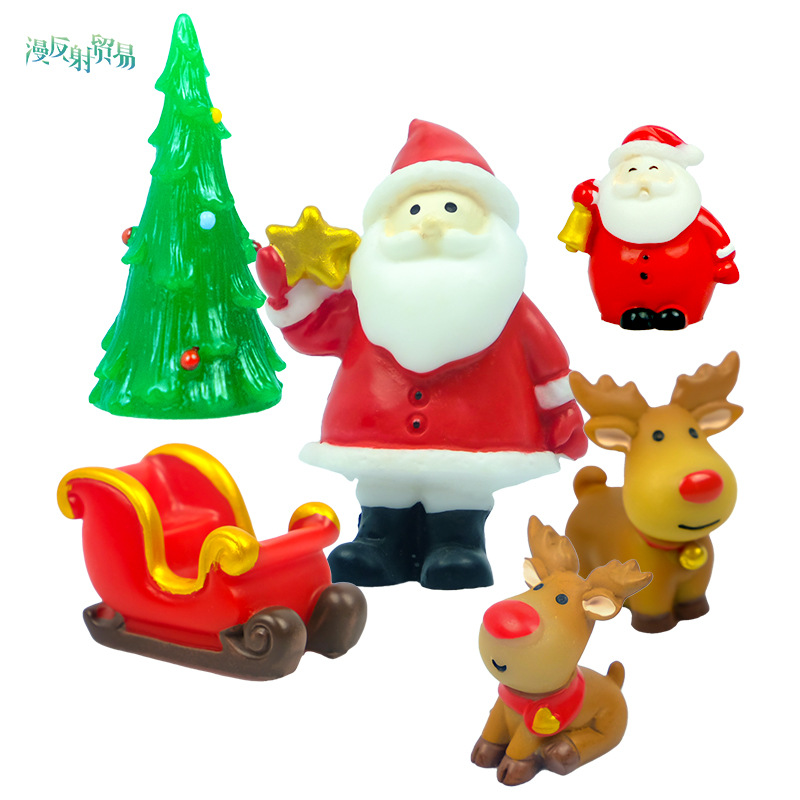 新しいクリスマスの老人の微景観の造景の雪だるまの装飾品の部品の樹脂の小さい置物のトナカイの車の木