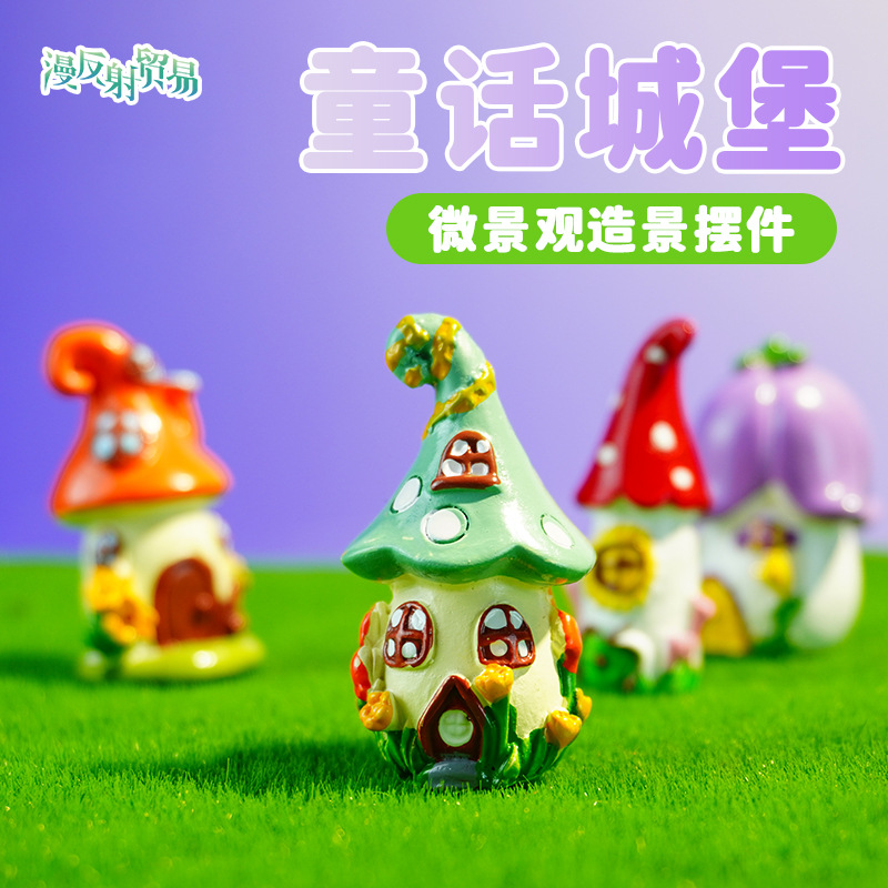 おとぎ話城造微景観置物卸売りケーキ装飾品金魚鉢創意樹脂キノコ城
