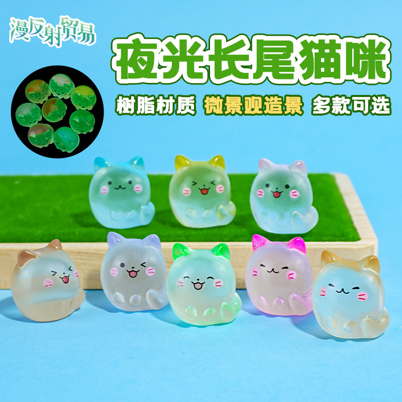 微景観のデスクトップの装飾の新型の立体のかわいい夜光の子猫の漫画のDIYの長い尾の猫の車の小さい置物