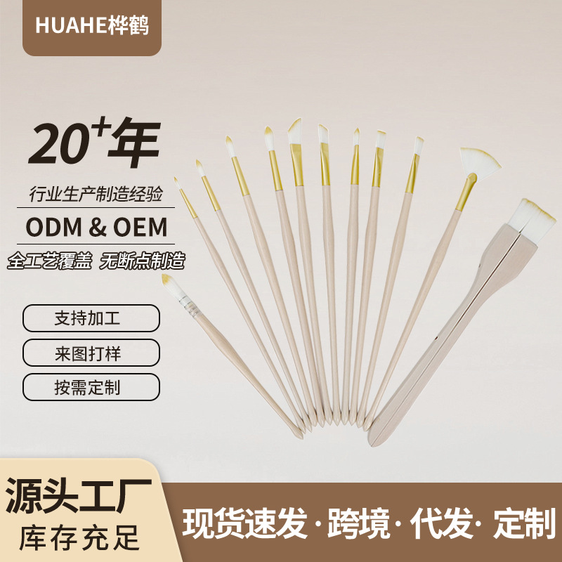 12本の油絵の筆のセットのナイロンの線の筆の子供の平頭の筆は水彩の水の粉の絵の具の筆の国画の絵筆をブラシします。
