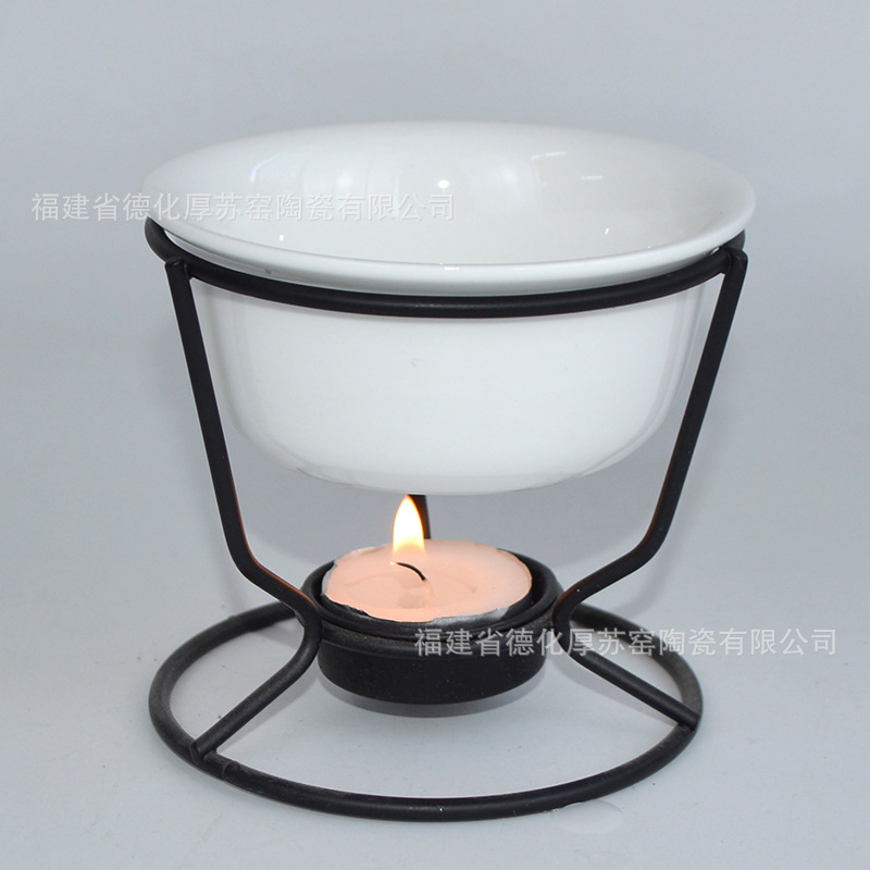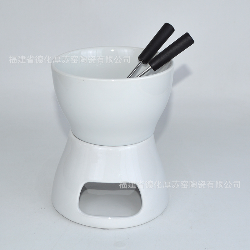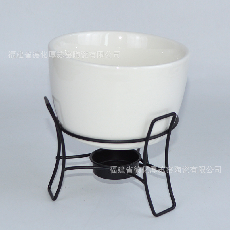 ホワイトセラミックチョコレートウォーマーヨーロッパとアメリカの輸出外国貿易クロスボーダーカスタムロゴチーズ鍋カップ鉄スタンド付き