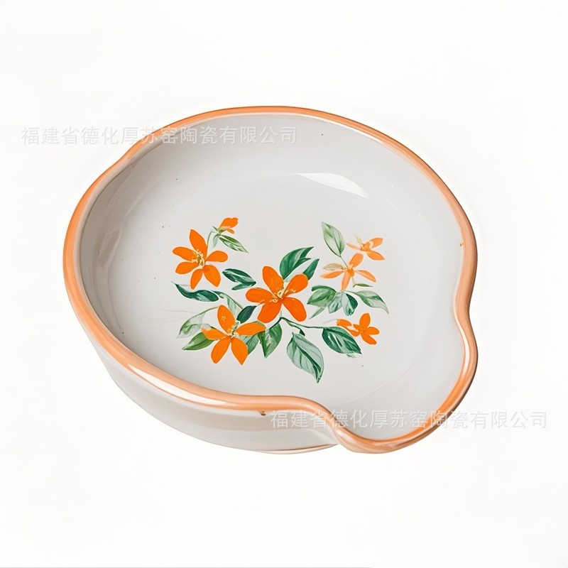 ラウンドストロークフラワーセラミックスプーンホルダーヨーロッパとアメリカの貿易輸出カスタムストーブスプーンホルダーデザインパターンスプーンホルダー