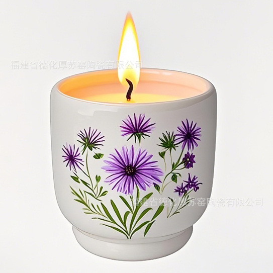 紫色の花セラミックキャンドルカップヨーロッパとアメリカの輸出クロスボーダーカスタムアロマテラピーティーキャンドルキャンドルホルダー白キャンドル容器