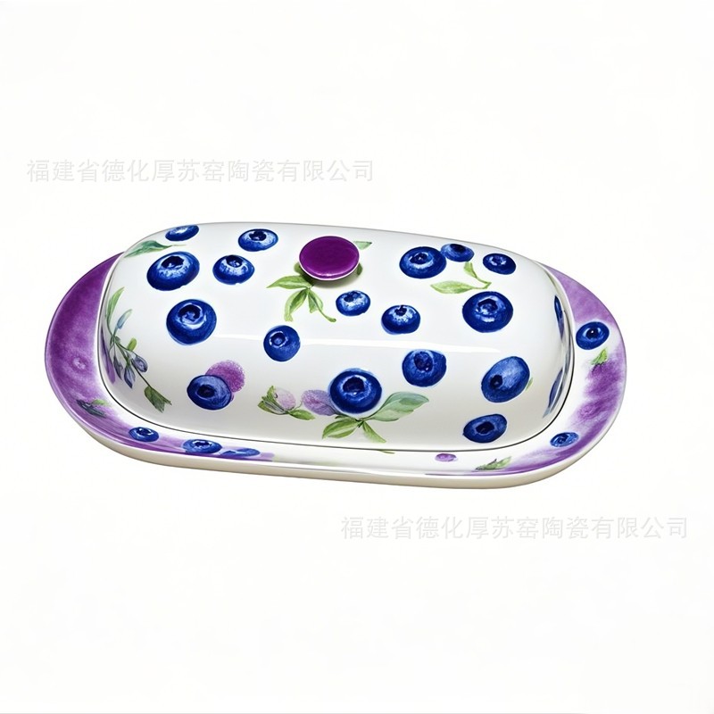 ブドウ柄セラミックバタープレートヨーロッパとアメリカの貿易輸出カスタムバター保存容器バタープレート