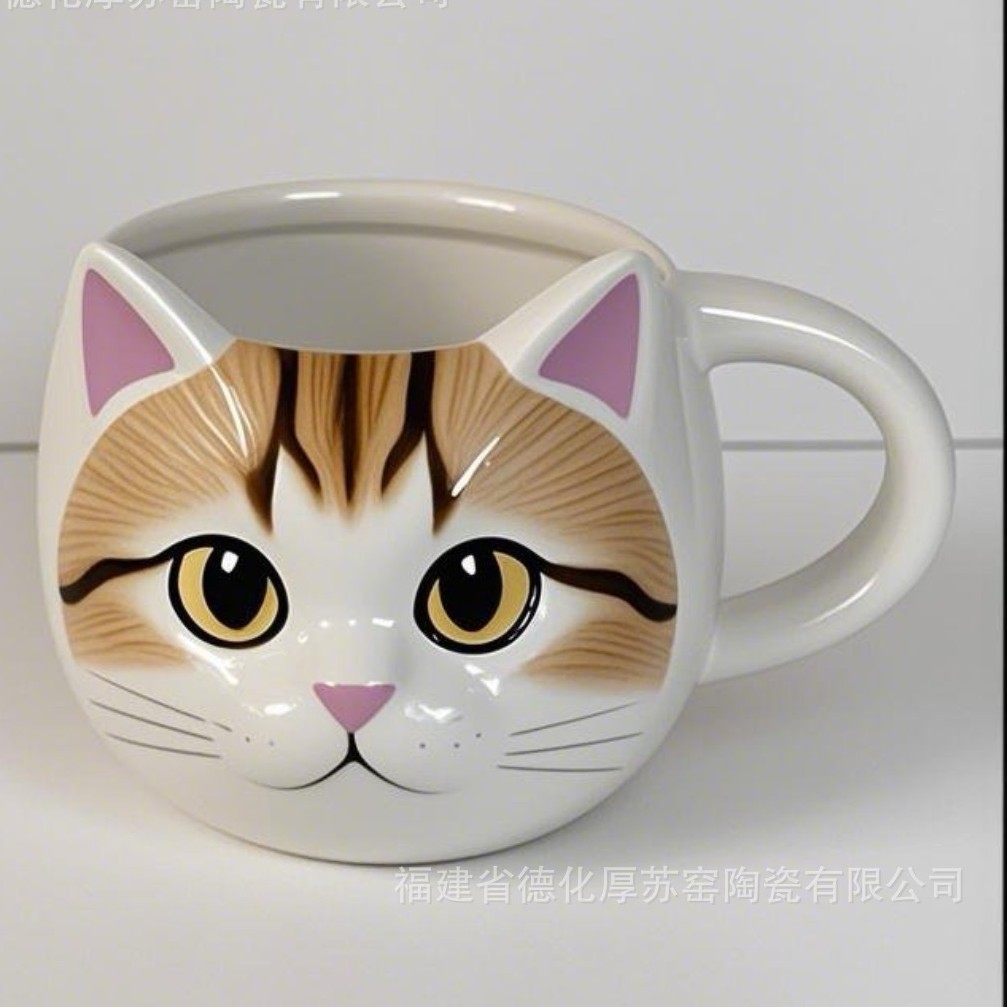 エンボス猫セラミックカップヨーロッパとアメリカのクロスボーダーカスタマイズ輸出磁器コーヒーカップ漫画動物マグ朝食カップ