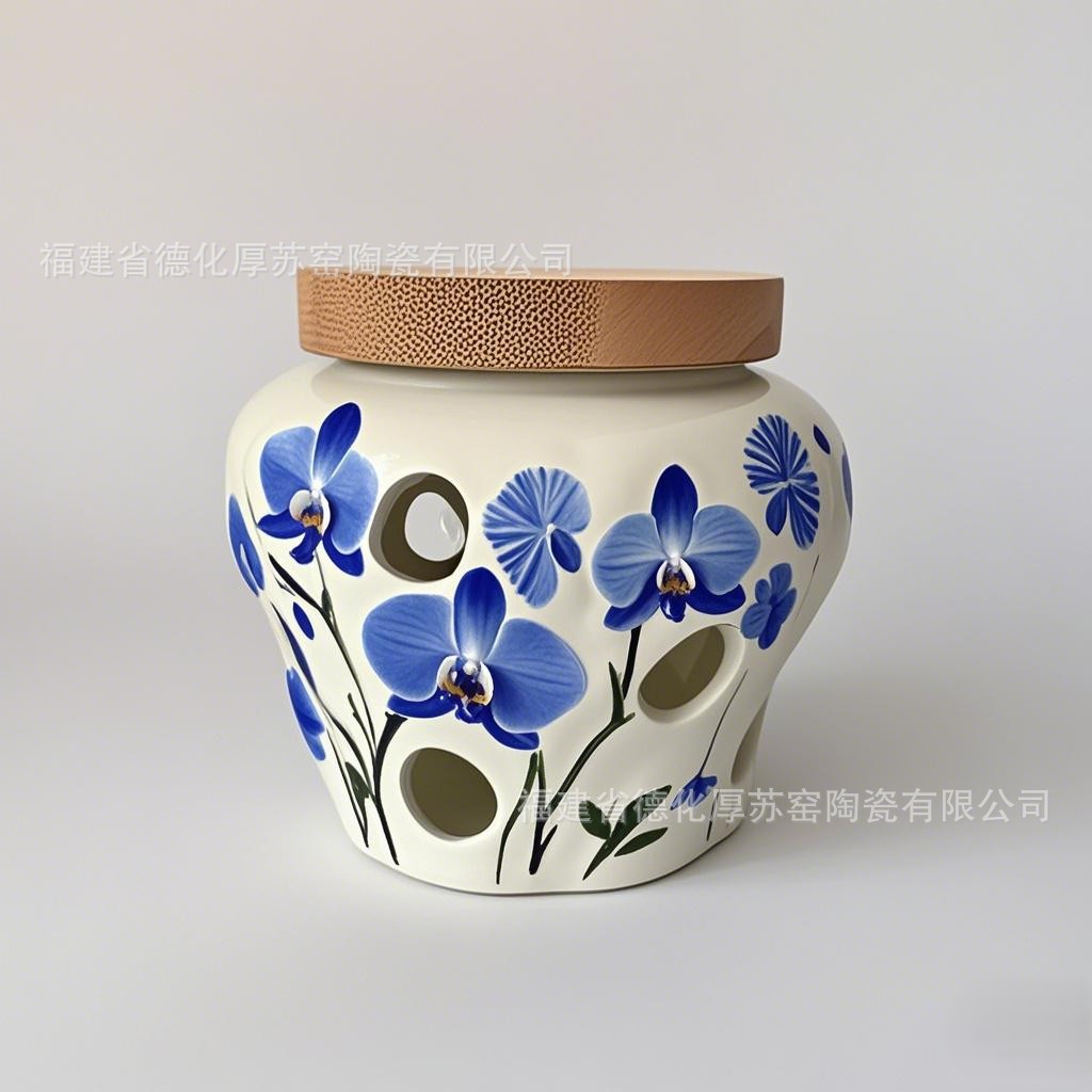 青い花の中空形状セラミックガーリックセーバークロスボーダー輸出カスタムガーリックストレージガーリックジャー