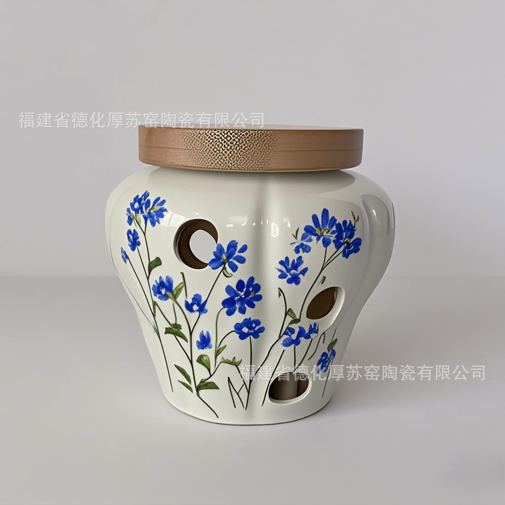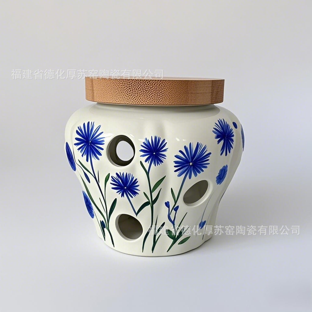 ブルーデイジーフルフラワーガーリックジャーヨーロッパとアメリカのクロスボーダーカスタマイズされたセラミックガーリックセーバー中空ガーリックジャー