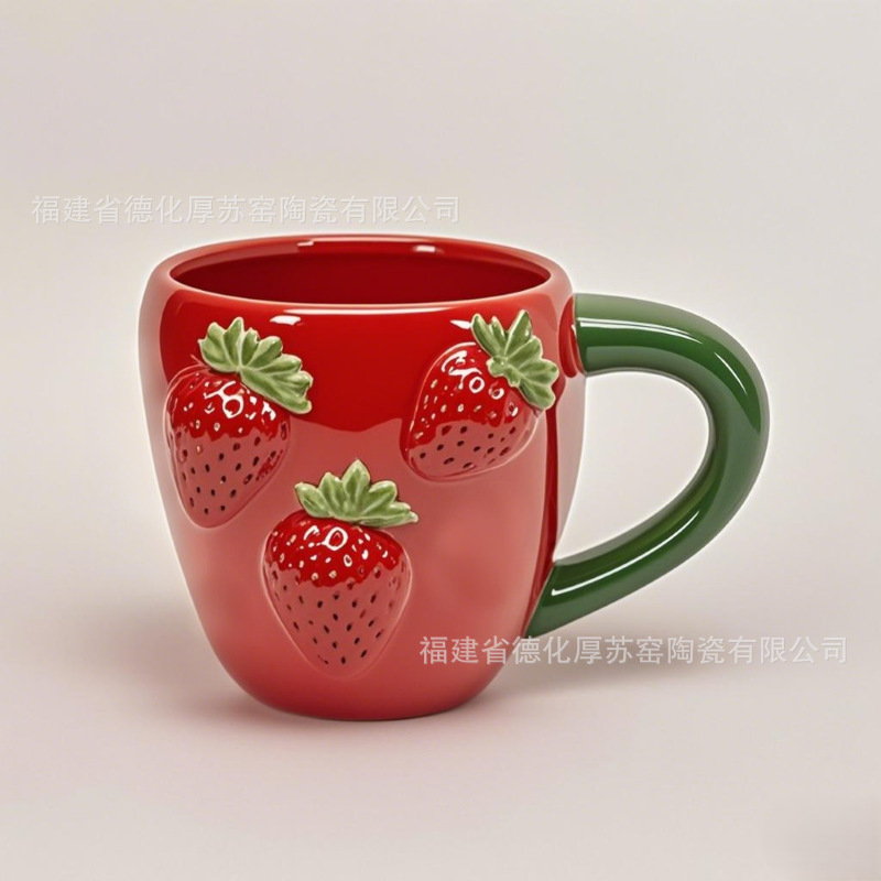 エンボスイチゴ柄セラミックカップ外国貿易輸出クロスボーダーカスタムフルーツ型マグカップ磁器コーヒーカップ