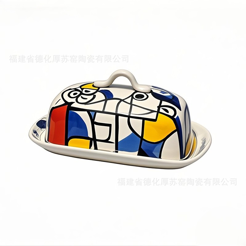 ポップスタイルセラミックバタープレート外国貿易クロスボーダーカスタマイズ輸出蓋付きフレンチバタープレートバター保存容器