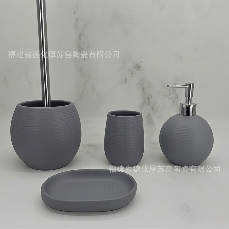 グレーのバスボトルセット 4 つの外国貿易輸出クロスボーダーカスタムソープボトルカップソープボックストイレブラシホルダーセット