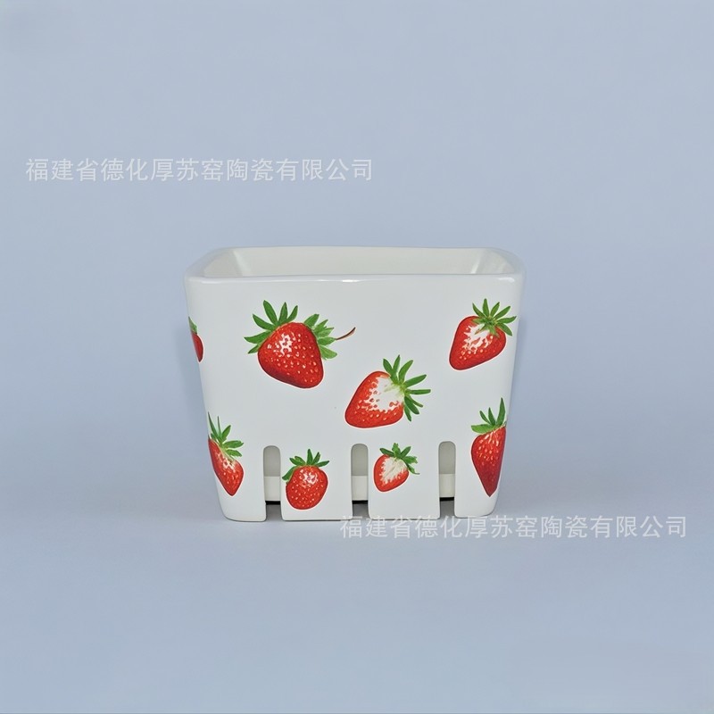 イチゴ柄スクエアセラミックフルーツバスケット外国貿易クロスボーダーカスタマイズ輸出田舎セラミックベリーバスケットフルーツボウル