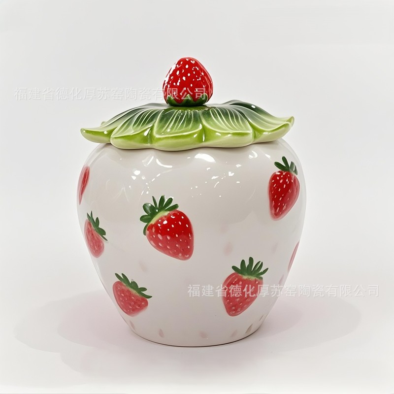 3D立体イチゴセラミック保存瓶外国貿易クロスボーダーカスタム輸出食品容器フルフラワープリント食品瓶