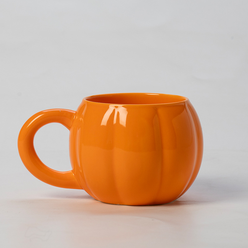 オレンジセラミックカボチャカップ外国貿易クロスボーダーデザインロゴセラミックマグハロウィン収穫祭コーヒーカップ