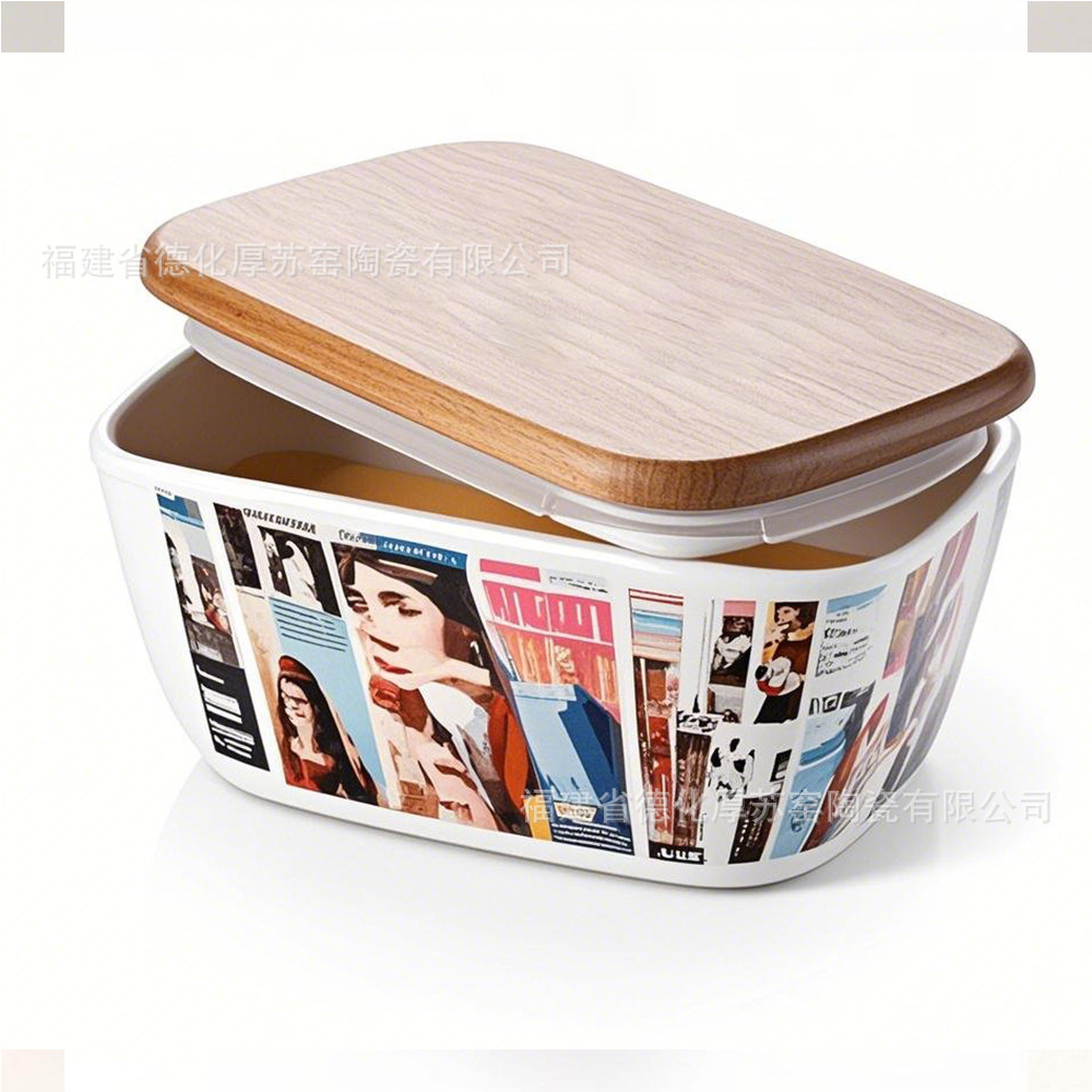 竹蓋付きフルフラワーカラフルなプリントセラミックバターボックス外国貿易クロスボーダーカスタム輸出長方形バターセーバー