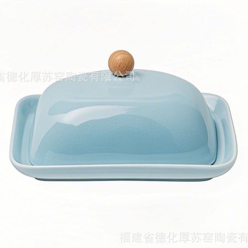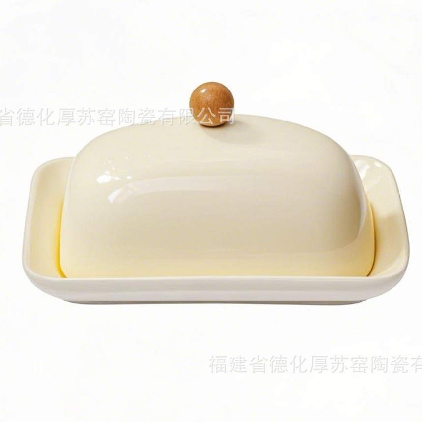 外国貿易クロスボーダーベージュセラミックバタートレイ蓋付きカスタムプリントロゴバターラックフレンチバタートレイコンテナ