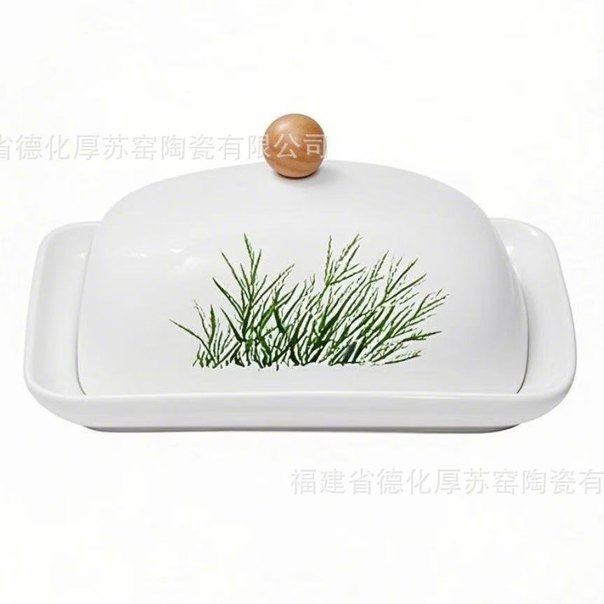 花柄白セラミックバタートレイ外国貿易クロスボーダー輸出カスタムバターセーバーフレンチバタートレイ